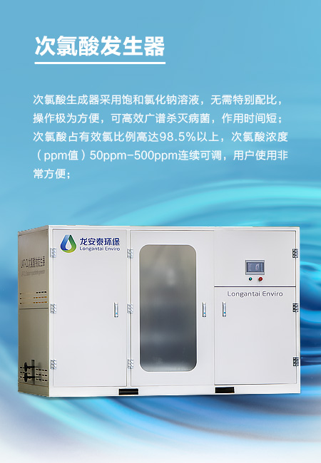 采用飽和氯化鈉溶液,無需特別配比,操作極為方便,可高效廣譜殺滅病菌,作用時間短;次氯酸占有效氯比例高達98.5%以上,次氯酸濃度(ppm值)